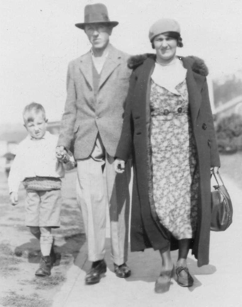 Lilian and Arthur with Reginald at Wythall Garage Lilian and Arthur with Stan, c1933
