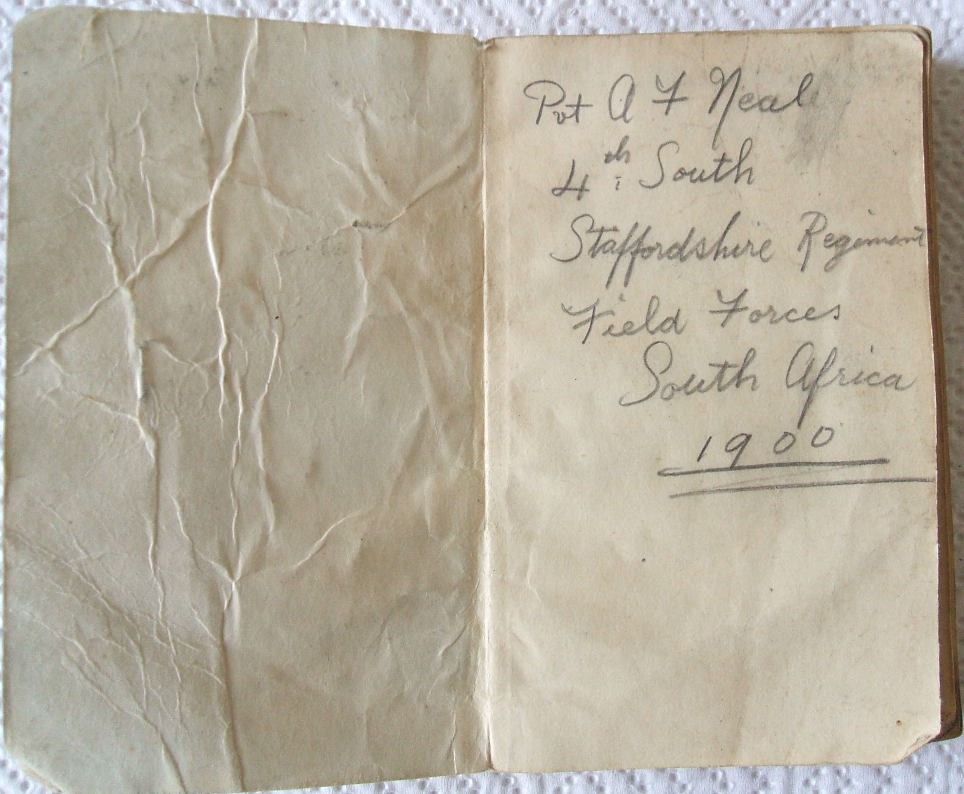 Arthur joined the 4th South Staffordshire Regiment Field Forces and fought in the Anglo Boer War of 1899 – 1902, sailing on the Aurania on 18 March 1900 and arriving at the Cape about 9 April. Along with the 1st Worcestershire, 2nd Royal West Kent, and 2nd Manchester, they formed the 17th Brigade under Major General Boyes and part of the 8th Division under General Sir Leslie Rundle. The battalion was not engaged in any big battle, and, like the rest of Rundle's force, had few opportunities of earning distinction, although their long stay in the north-east of the Orange River Colony was fraught with every conceivable hardship and danger.