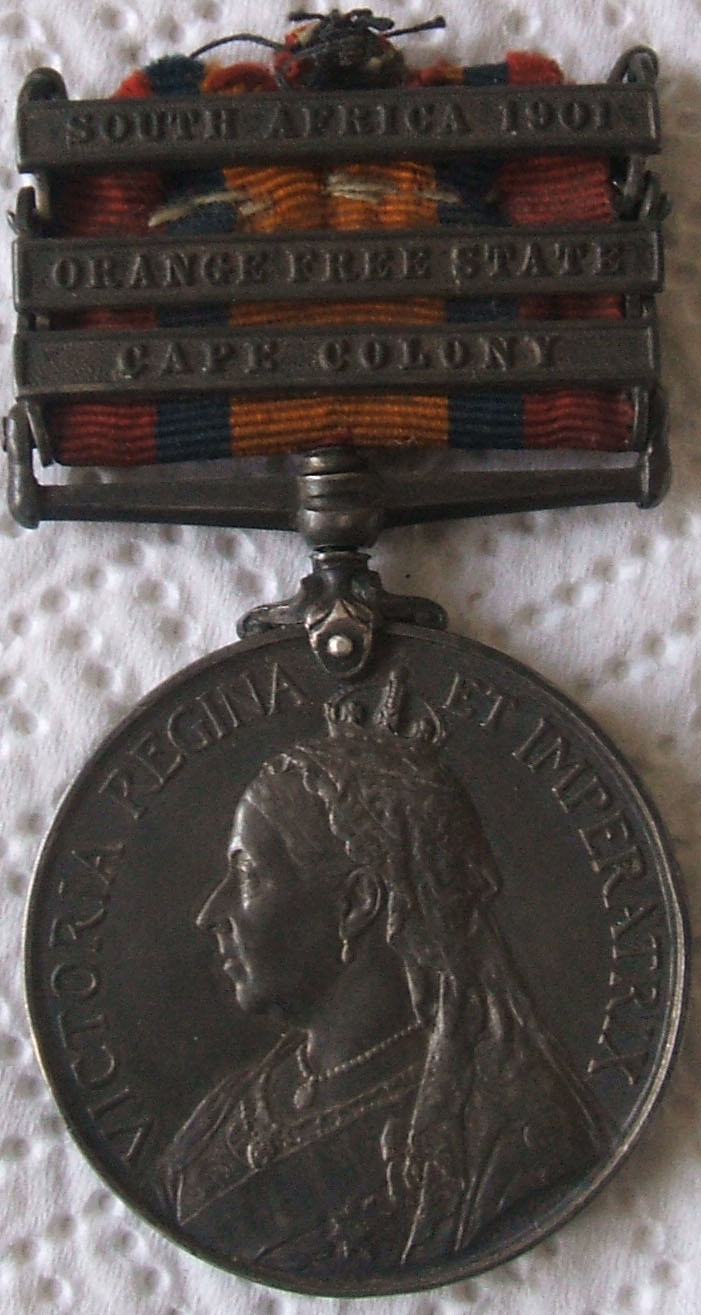 Arthur's Queen's South Africa Medal, 1901. The clasps show he fought in the Cape Colony and Orange Free State